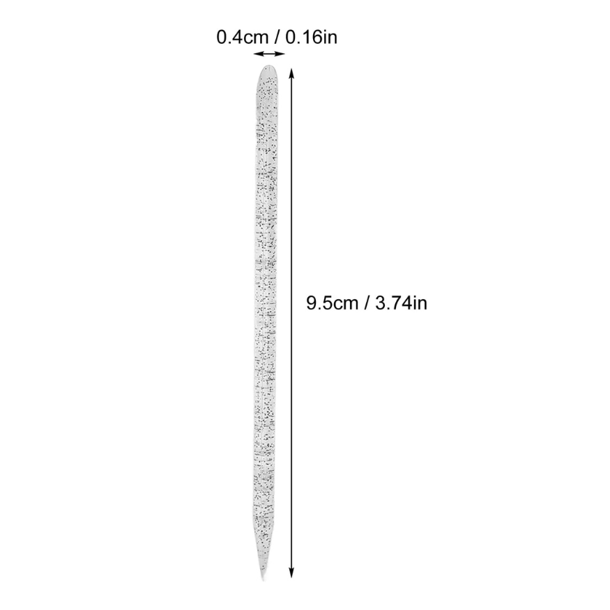 - Uso con dos cabezas — La barra de uñas desechable tiene un extremo con bisel y otro extremo puntiagudo, lo que es bueno para limpiar y quitar las uñas. La punta se puede raspar y limpiar con cuidado alrededor o debajo de la uña. El extremo biselado se puede utilizar para limpiar la cutícula y el removedor de uñas.