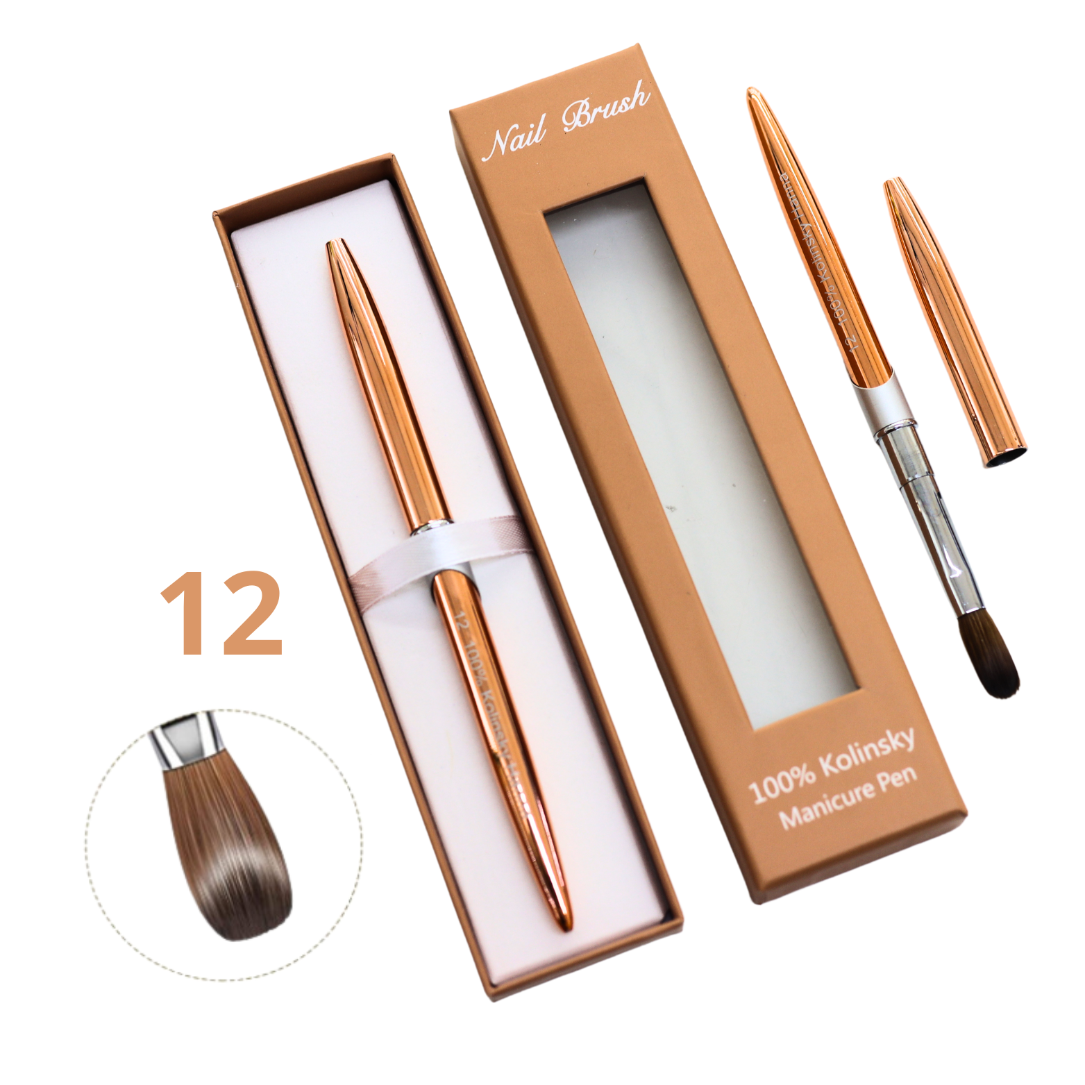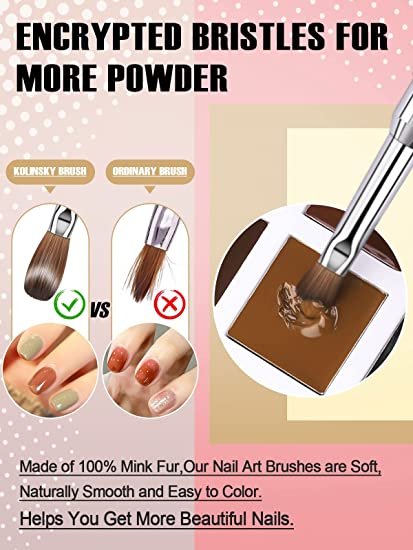 • Pincel para uñas Pure Kolinsky: nuestros pinceles para uñas acrílicas están hechos 100% de cabello Kolinsky, que es suave, liso y natural, las cerdas no se caen fácilmente. Tenemos cinco tamaños de bolígrafos para uñas, tamaño: 8/10/12/14/18