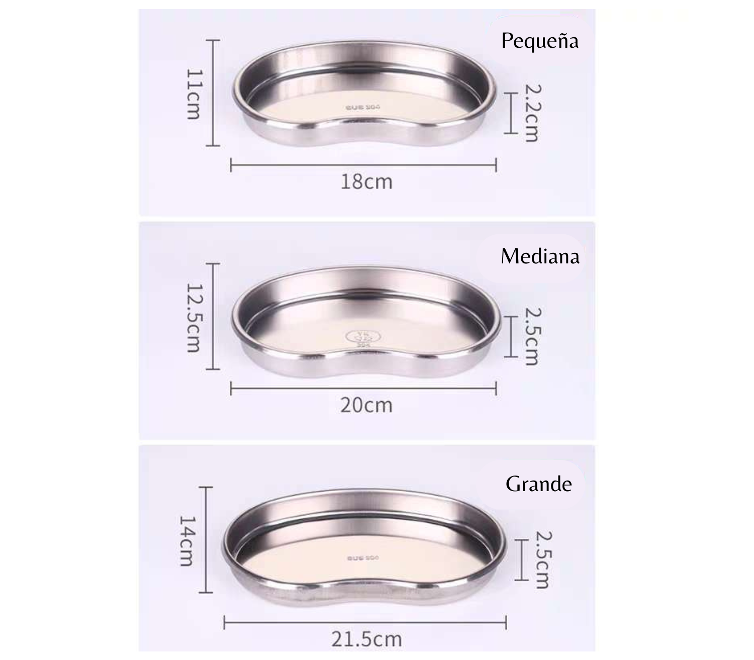 Bandejas de acero inoxidable 3 tamaños