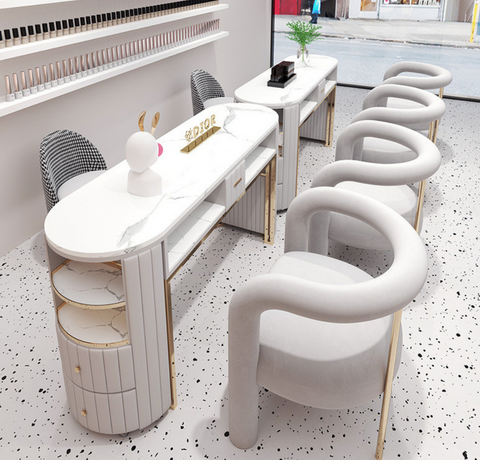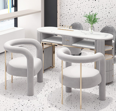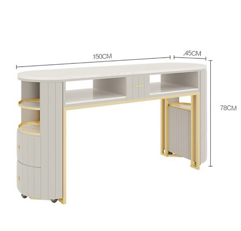 Mesa de manicura doble de terciopelo, 2 carros auxiliares portatiles con ruedas,