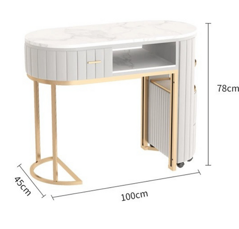 Mesa de manicura de terciopelo con carrito auxiliar  portatil coin ruedas y 2 cajones